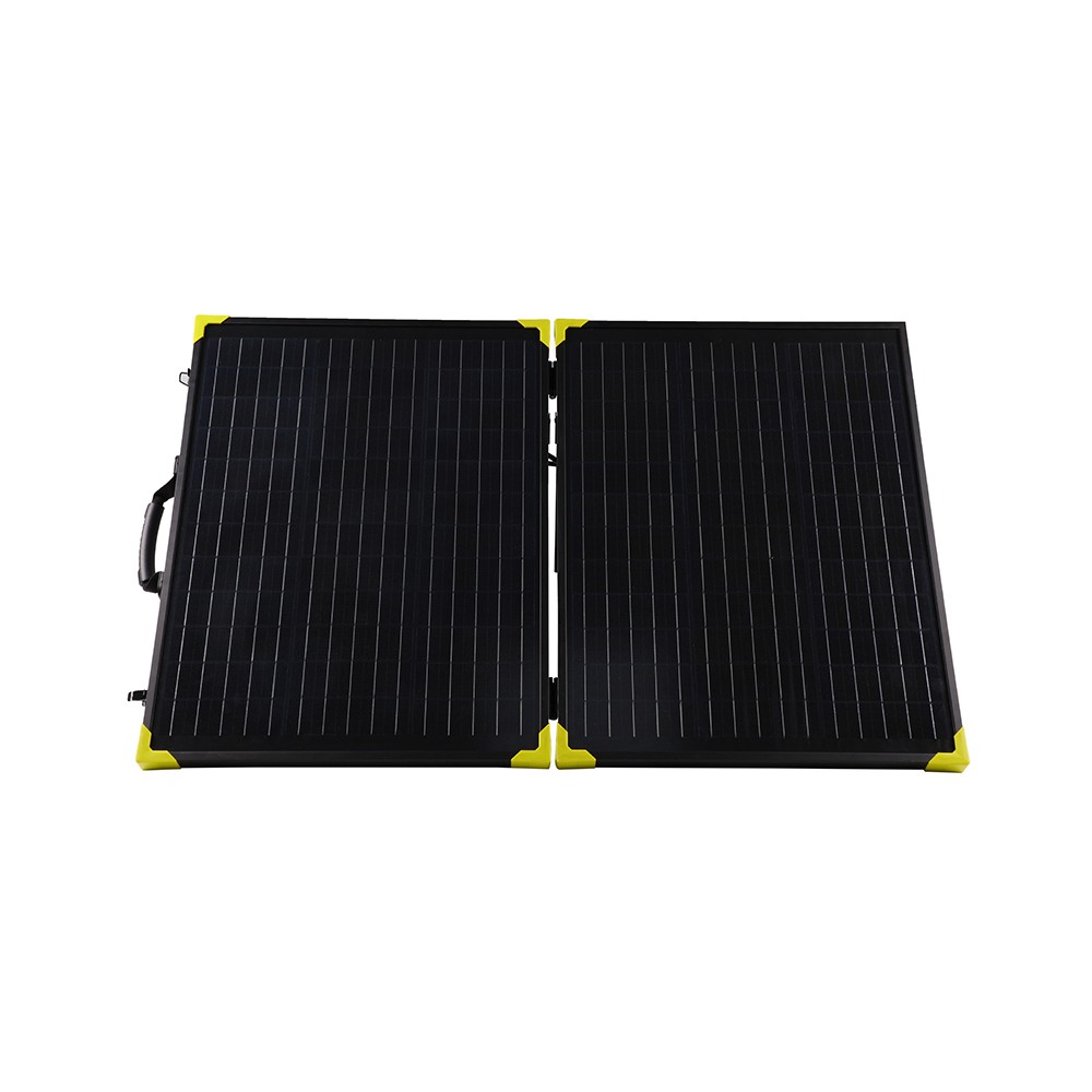 1. 100W फोल्ड गर्न मिल्ने सनपावर सोलार प्यानल प्रयोग गर्न तयार प्लग हो र पोर्टेबल सोलार सोलुसन प्ले गर्दछ। तपाईले केवल सौर प्यानललाई फोल्ड गर्न आवश्यक छ र यसको सौर सतह सिधै सूर्यमा फेस गर्नुहोस्।